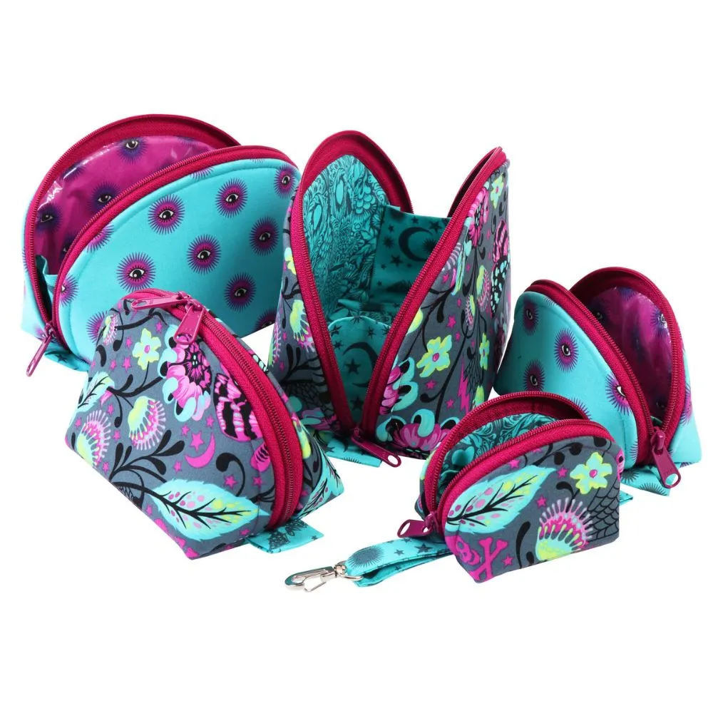 Easy and fun to make, these bags in five sizes are perfect for storing and carrying make-up, sewing supplies, tech gear, and more.