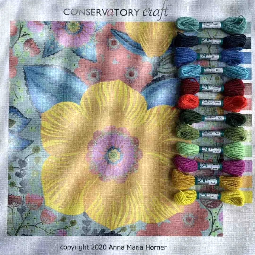 Custom printed 12 point mesh is simple to stitch and sturdy to handle for new or experienced stitchers. It is packaged with hand-selected, rich shades of Appleton’s tapestry wool, a stitch guide, and a needle (because who wants to wait?!).