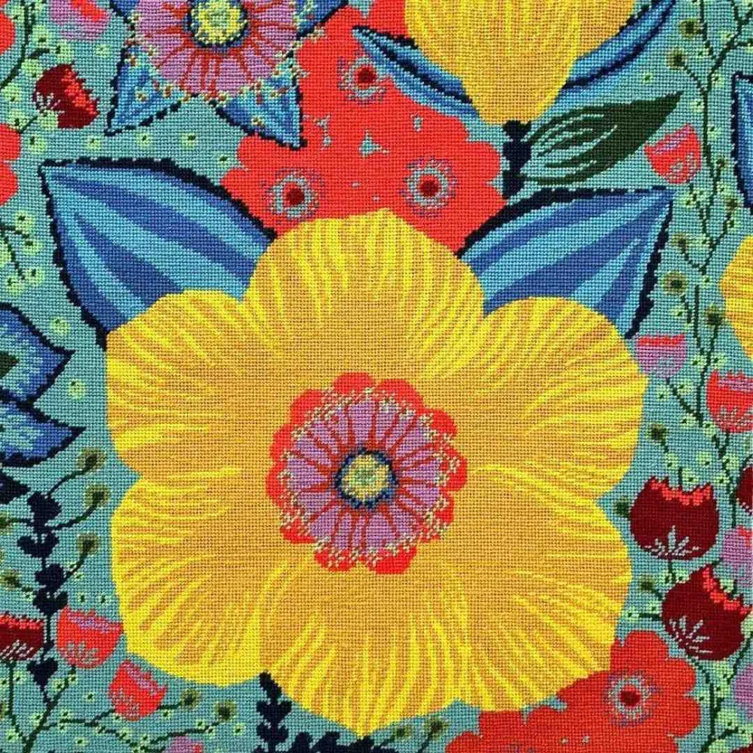 The finished piece can be sewn into a cushion front, or framed as a work of art, or make a charming fashion statement as the front of a tote bag!