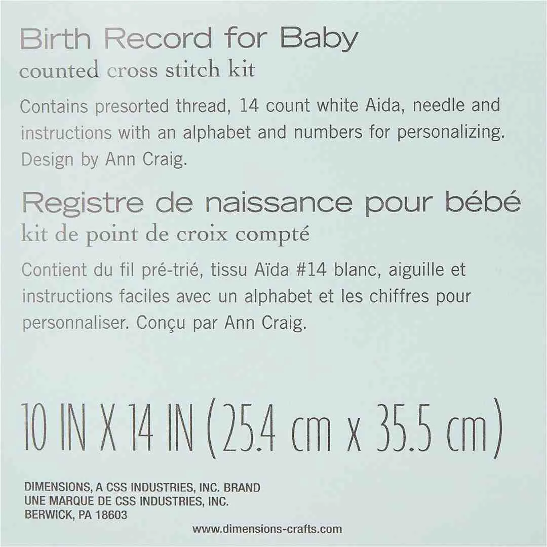 Dimensions: Cross Stitch Kit – Birth Record for Baby