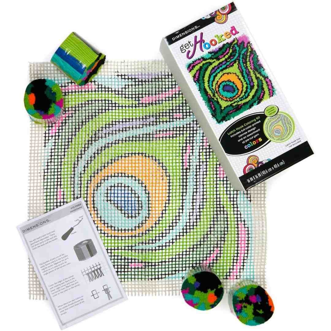 Dimensions: Latch Hook Kit – Colorful Peacock Feather