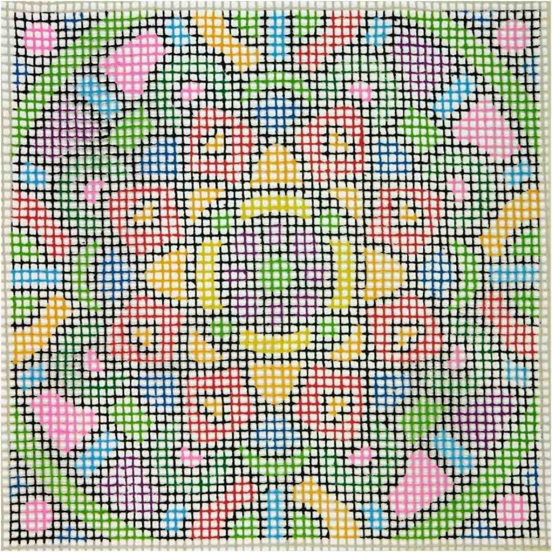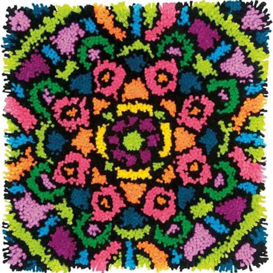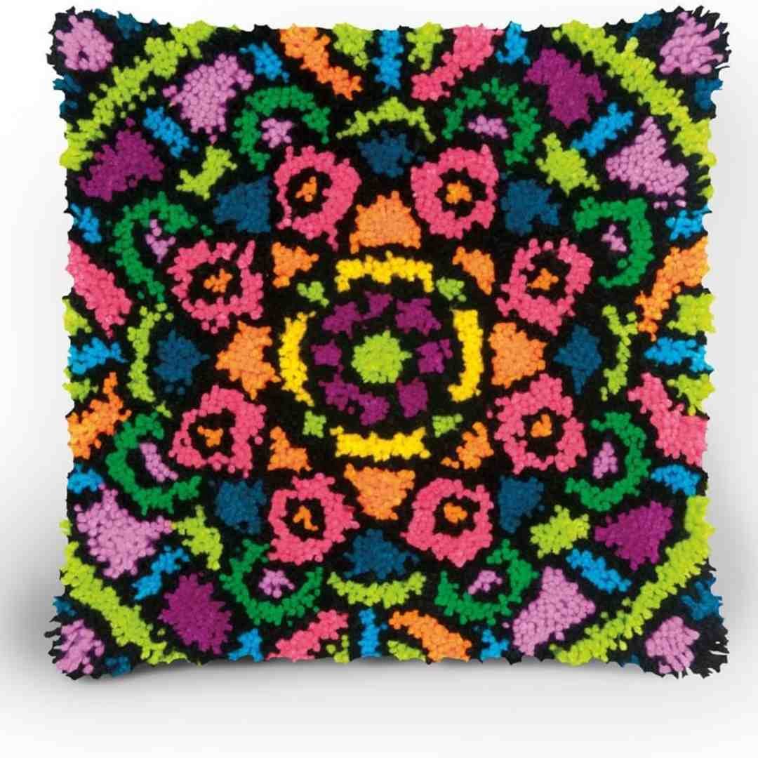 This vibrant latch hook design features an explosion of bright colors in a fun floral pattern.