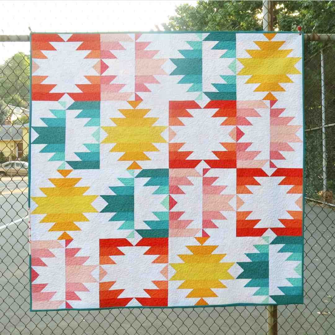 A modern take on the classic Delectable Mountains design, this pattern can be made from yardage or precut 2-1/2″ strips.