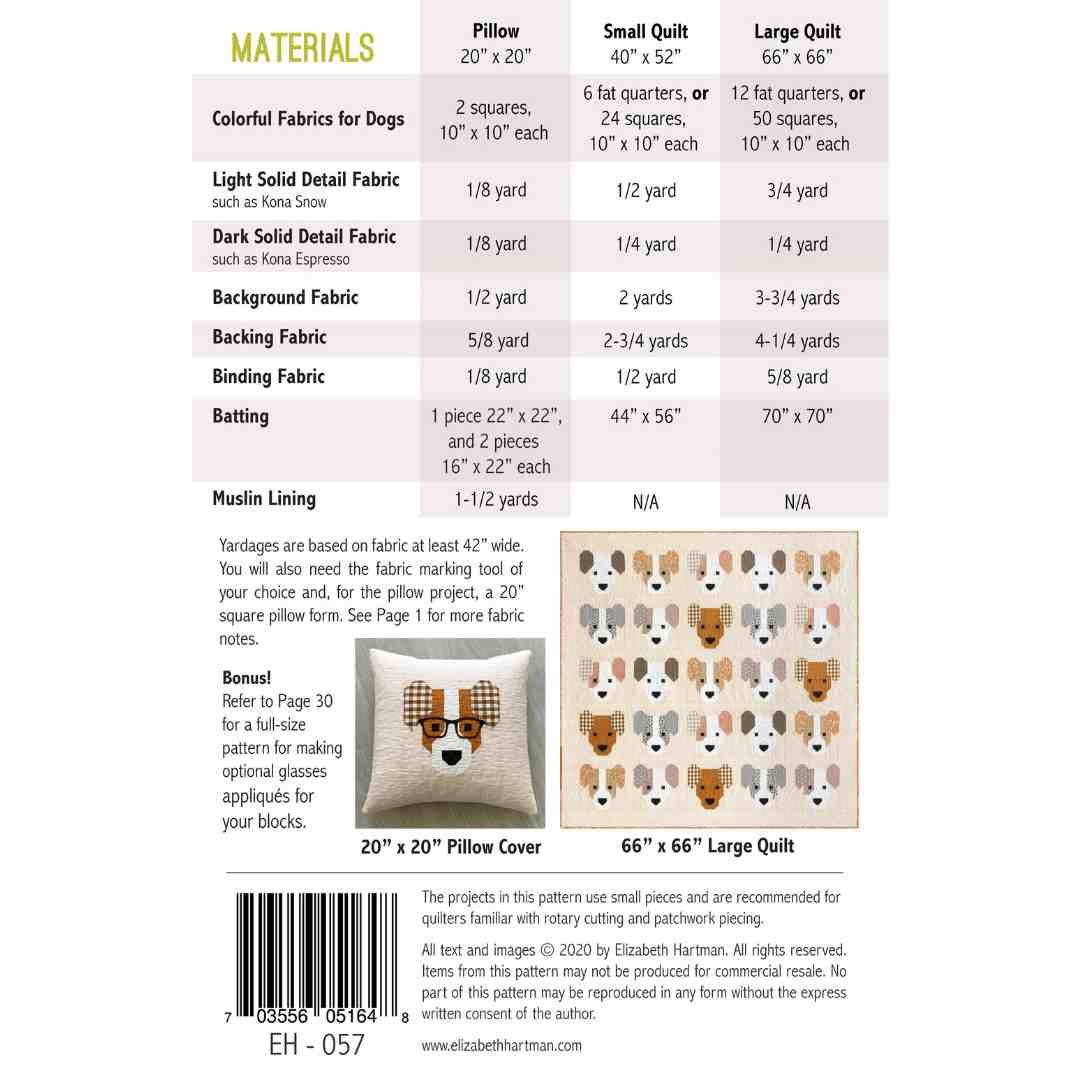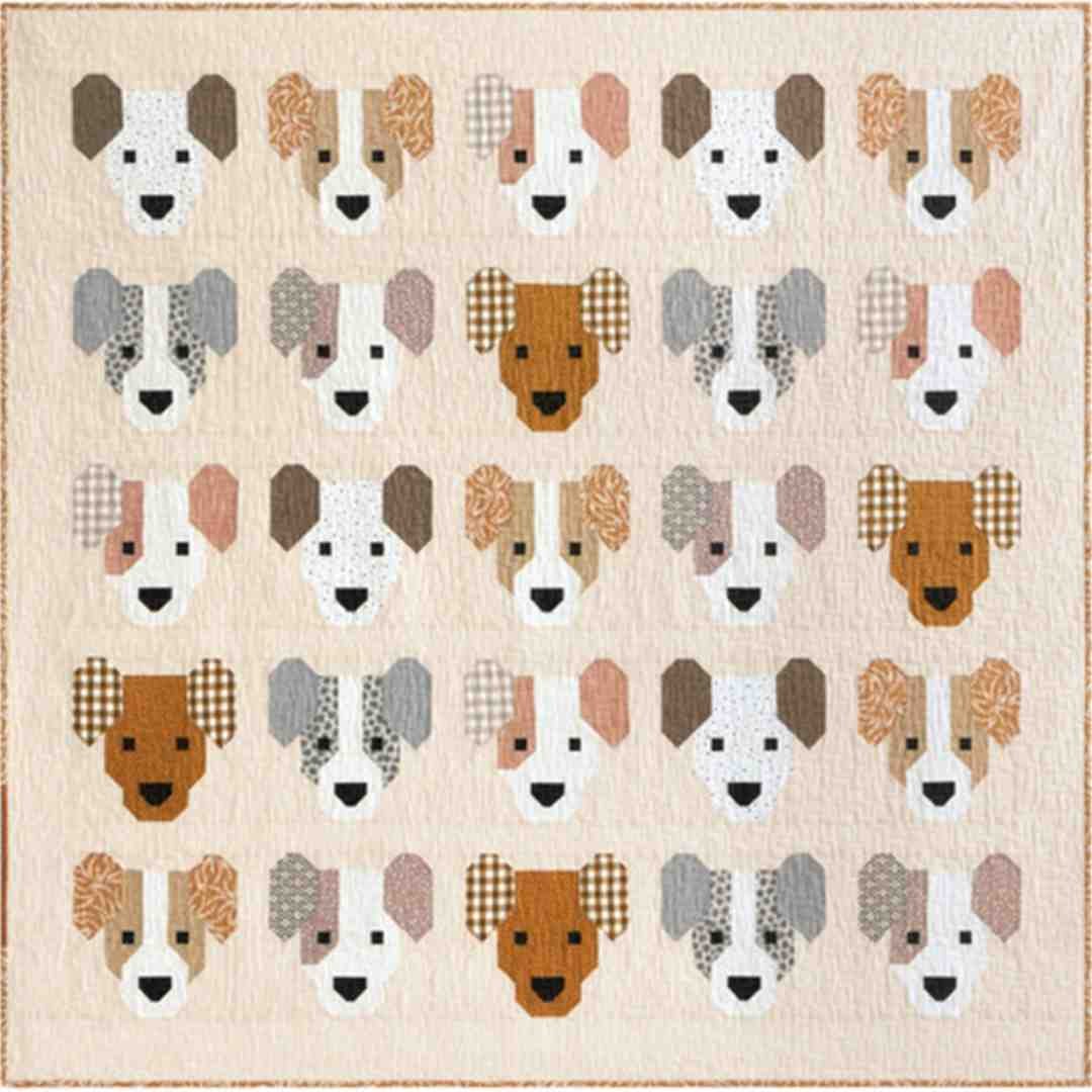 The Puppies is a patchwork sampler pattern featuring three dog blocks: Smokey, Toby, and Lulu.
