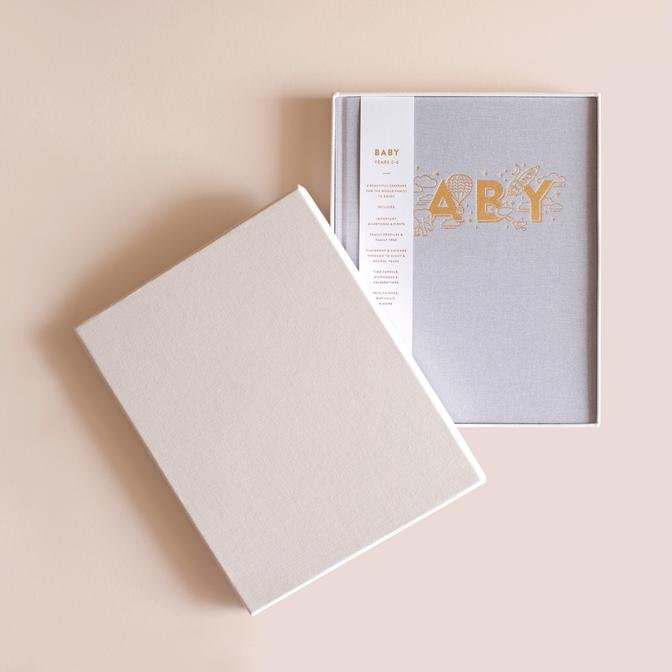 Fox & Fallow: Baby Book – Grey (Boys) + Cream Box