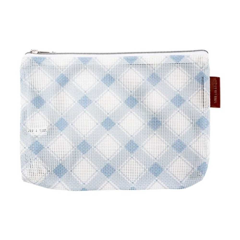 This mesh project bag is adorned with timeless plaid.