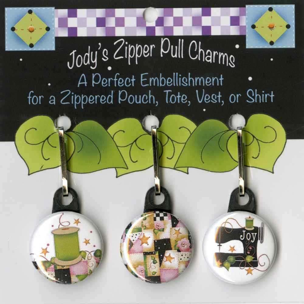 Jody Houghton Designs: Zipper Charm – Pink and Black theme for Quilters (Set of 3)