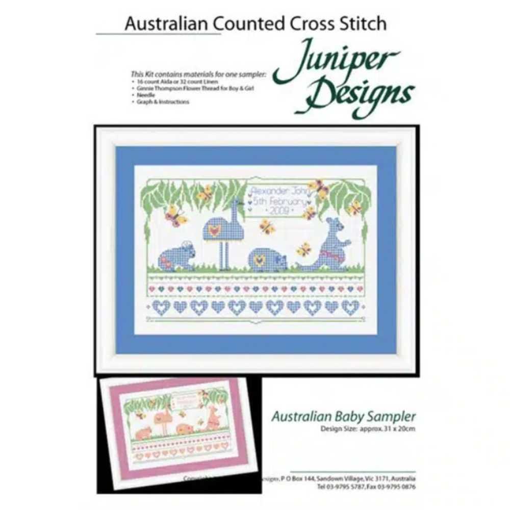 Juniper Designs: Cross Stitch Kit – Australian Baby Sampler