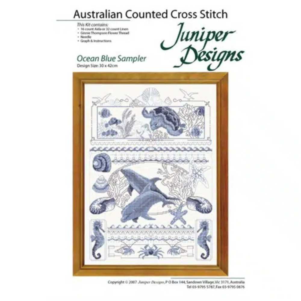 Juniper Designs: Cross Stitch Kit – Ocean Blue Sampler