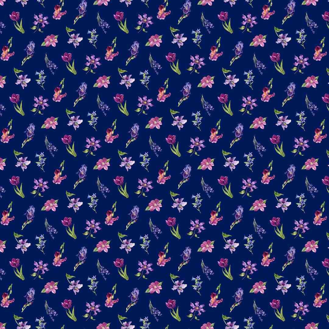 Vibrant botanical florals on backgrounds of crisp white and mystical navy