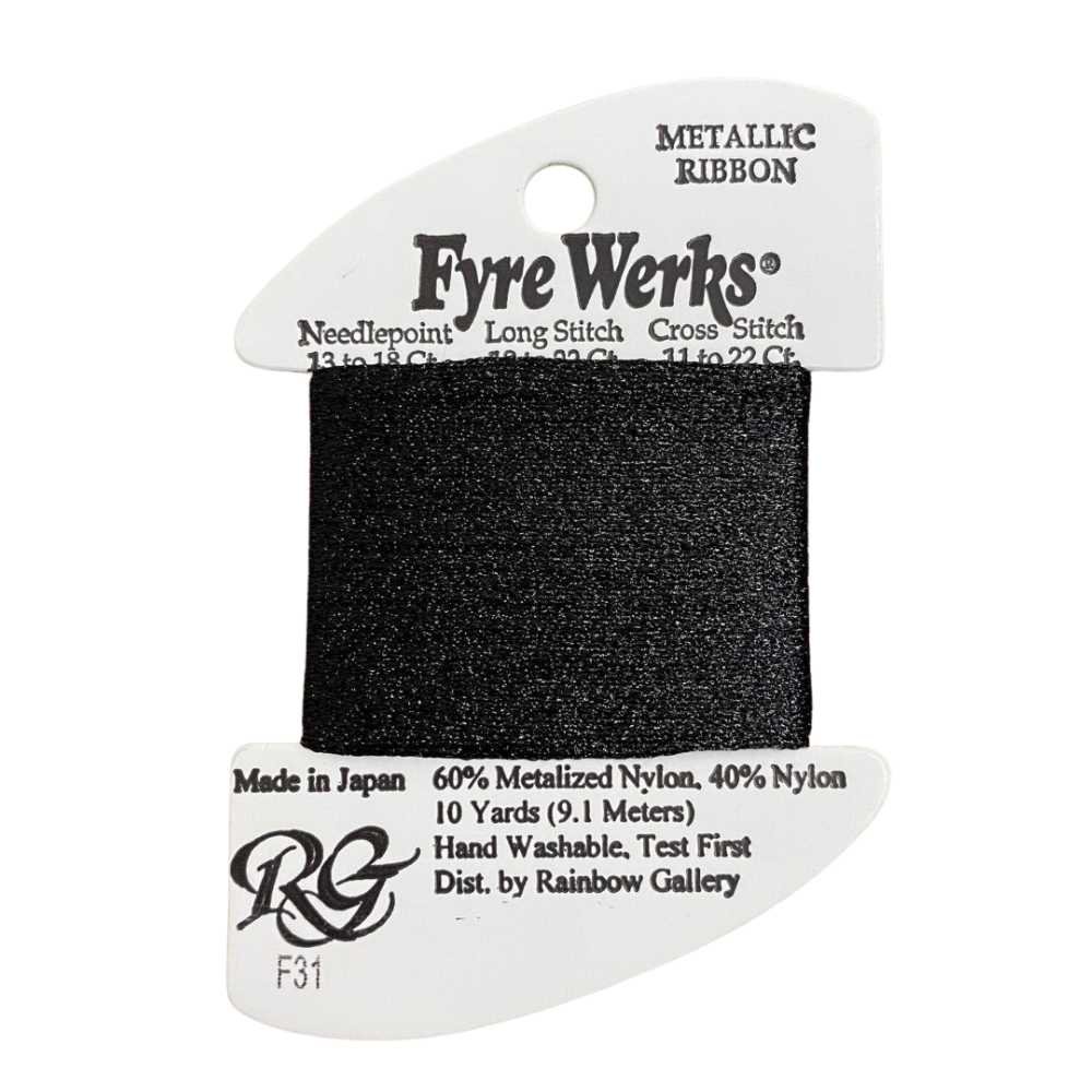 Fyre Werks is a very high luster 1/16th” beautiful shiny metallic ribbon that will add glitter and glitz to your work. Do not use overly long pieces and be careful to lay.
