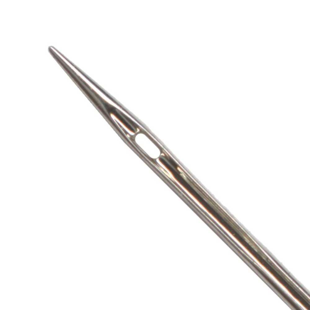 Chrome plated Jersey needle resists heat and wear. The needle stays cooler with less stitch distortion. Thread passes through the eye with less friction. Chrome allows the needle to penetrate through fabric with less resistance.