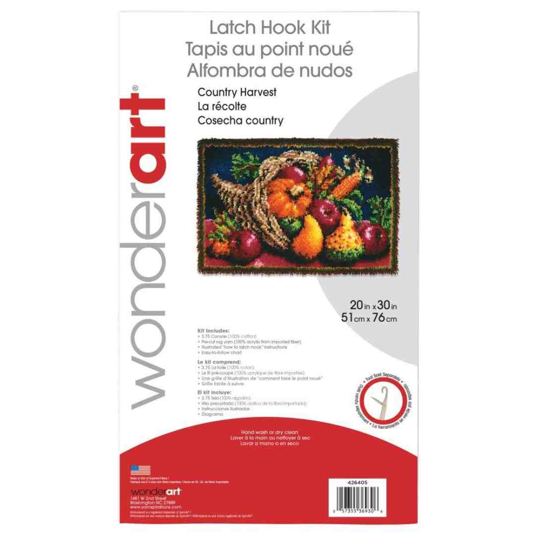 - This kit contains a 50 percent polyester/50 percent cotton canvas, pre-cut rug yarn, illustrated instructions and an easy-to-follow chart